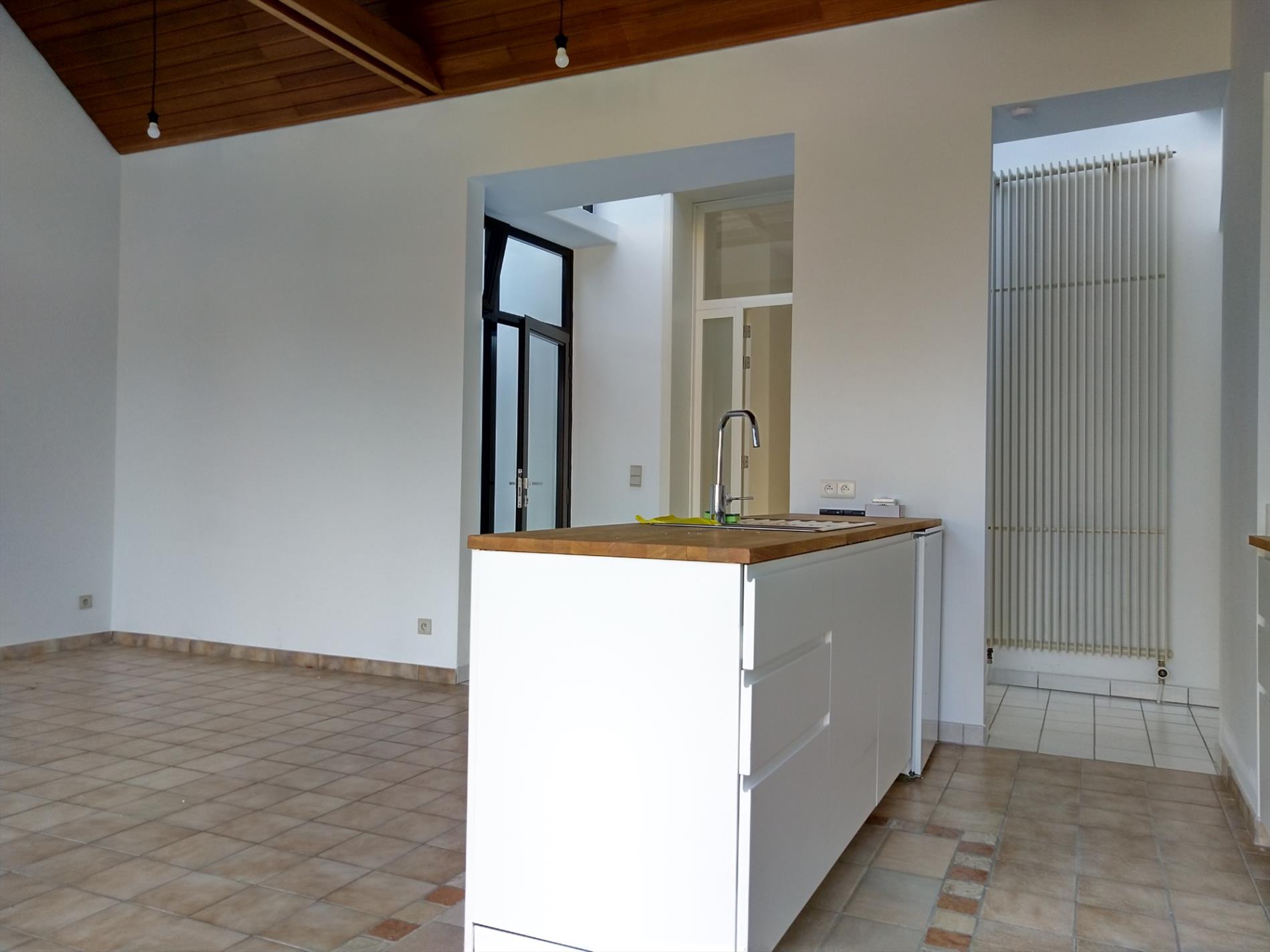 GLVL.- appartement met tuin en garage en omvattende een ruime leefruimte-eetplaats met open ingerichte keuken, toilet, badkamer, douchecel, inkomhall, garage, buro/slpk., 1 slpk. - aparte inkomhall, ruime zolderberging en tuin aan de achterzijde met terras. Volledig geschilderd en instapklaar. Goede verbinding met grote invalswegen en luchthavengebied.