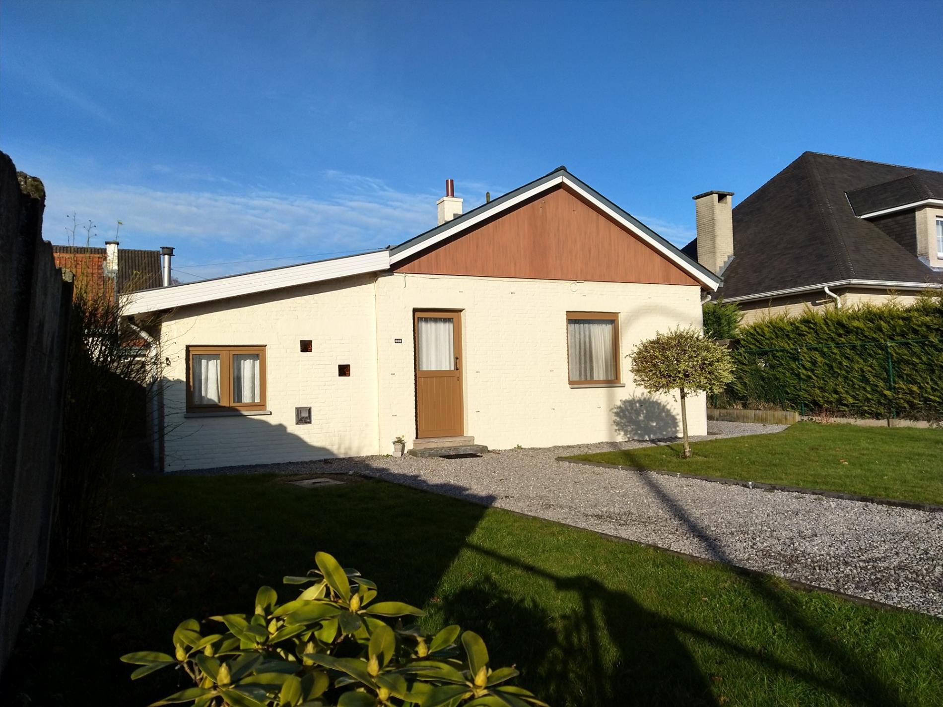 Compacte vrijstaande woning met tuin omvattende een GLVL. niv. met hall, ingerichte badkamer met toilet en ligbad, open ingerichte keuken met eetruimte, leefruimte , 2 slpk. - tuin met oprit en tuinhuis - het geheel is voortreffelijk onderhouden, in goede staat en instapklaar.