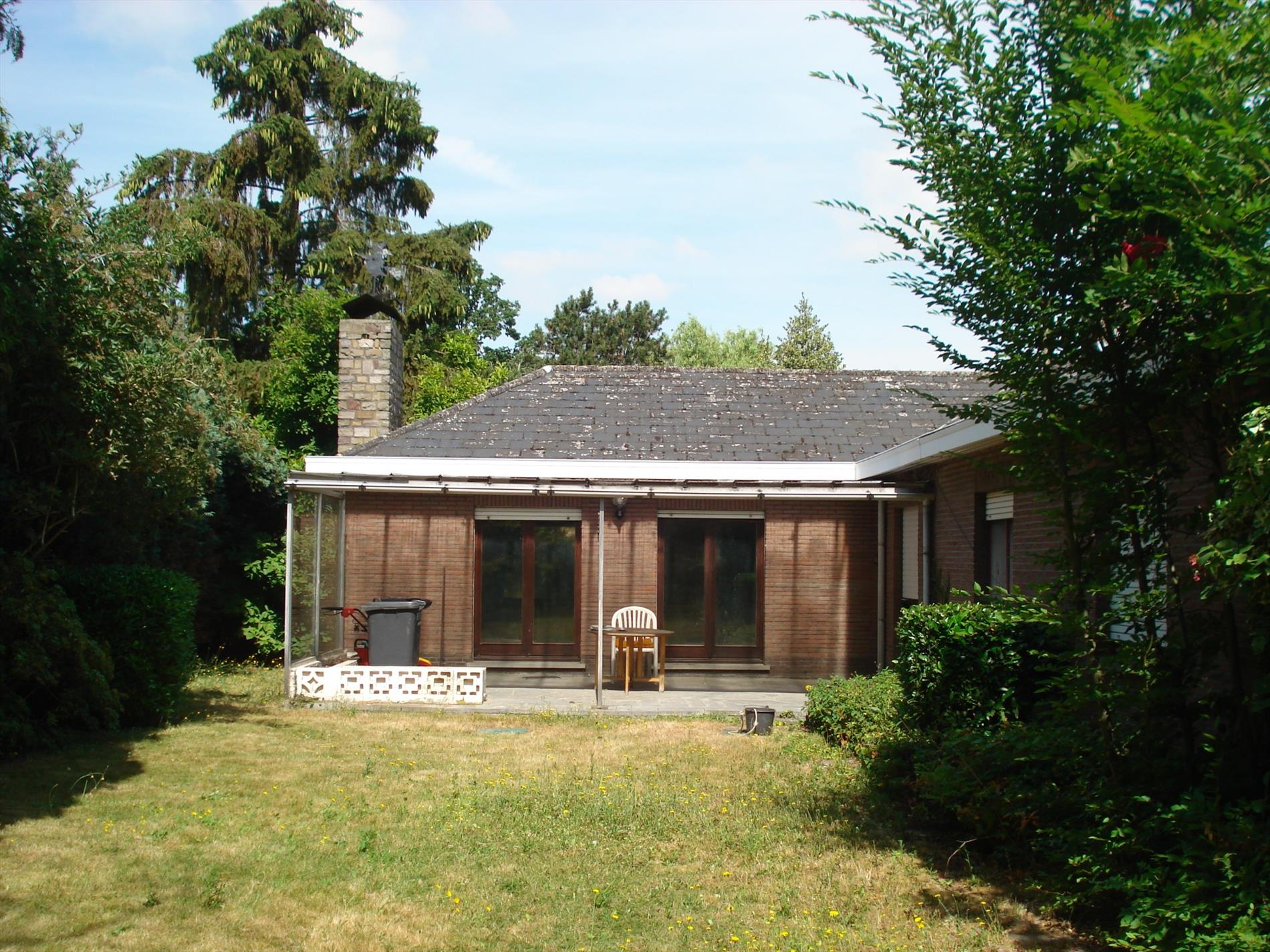Ruime 4-gevelwoning type bungalow, gesitueerd op in een rustige laan van het Zonnebos. Op kelderniv. is er een ruime garage voorzien met technische ruimte en toegang tot het GLVL. niv.