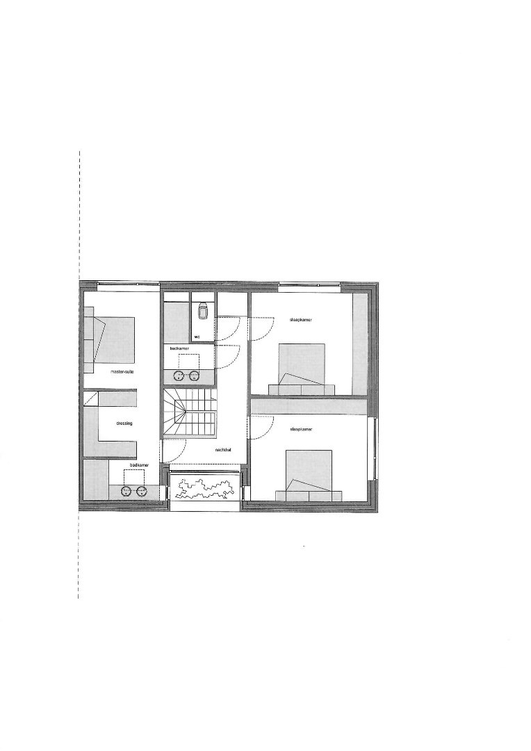 De woningindeling omvat op het GLVL. een garage, leefruimte-eetplaats met open keuken, bergruimte, inkomhall, gastentoilet, traphall - VERD. 1 met ruime nachthall - overloop, toilet, badkamer, 2 SLPK., 1 mastersuite met aansluitend dressingruimte en badkamer.