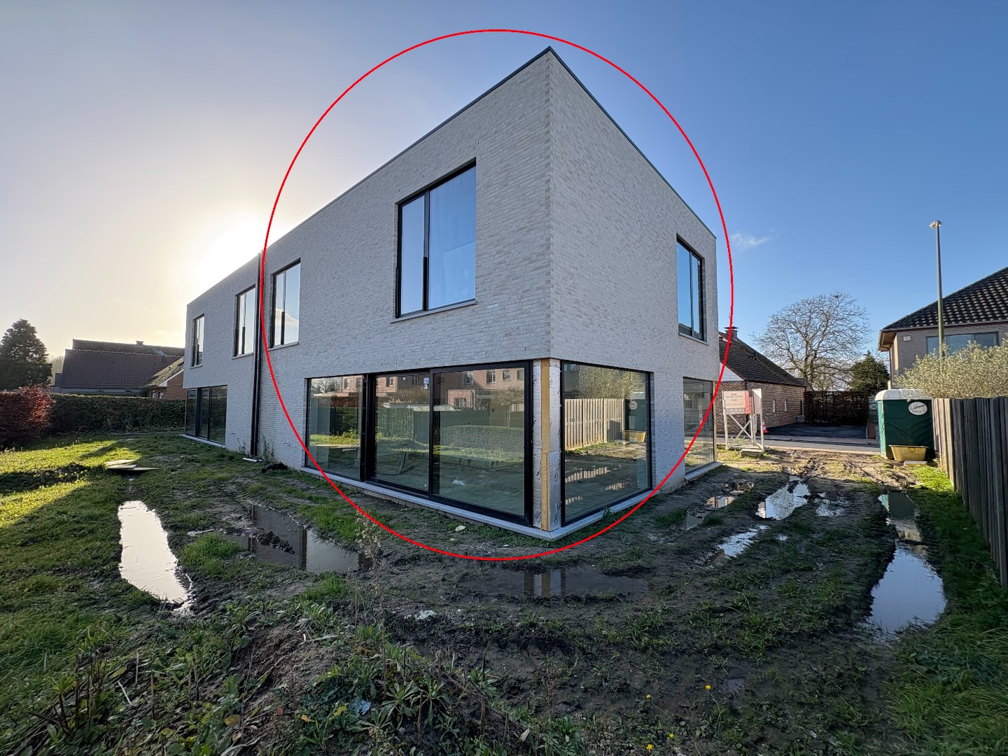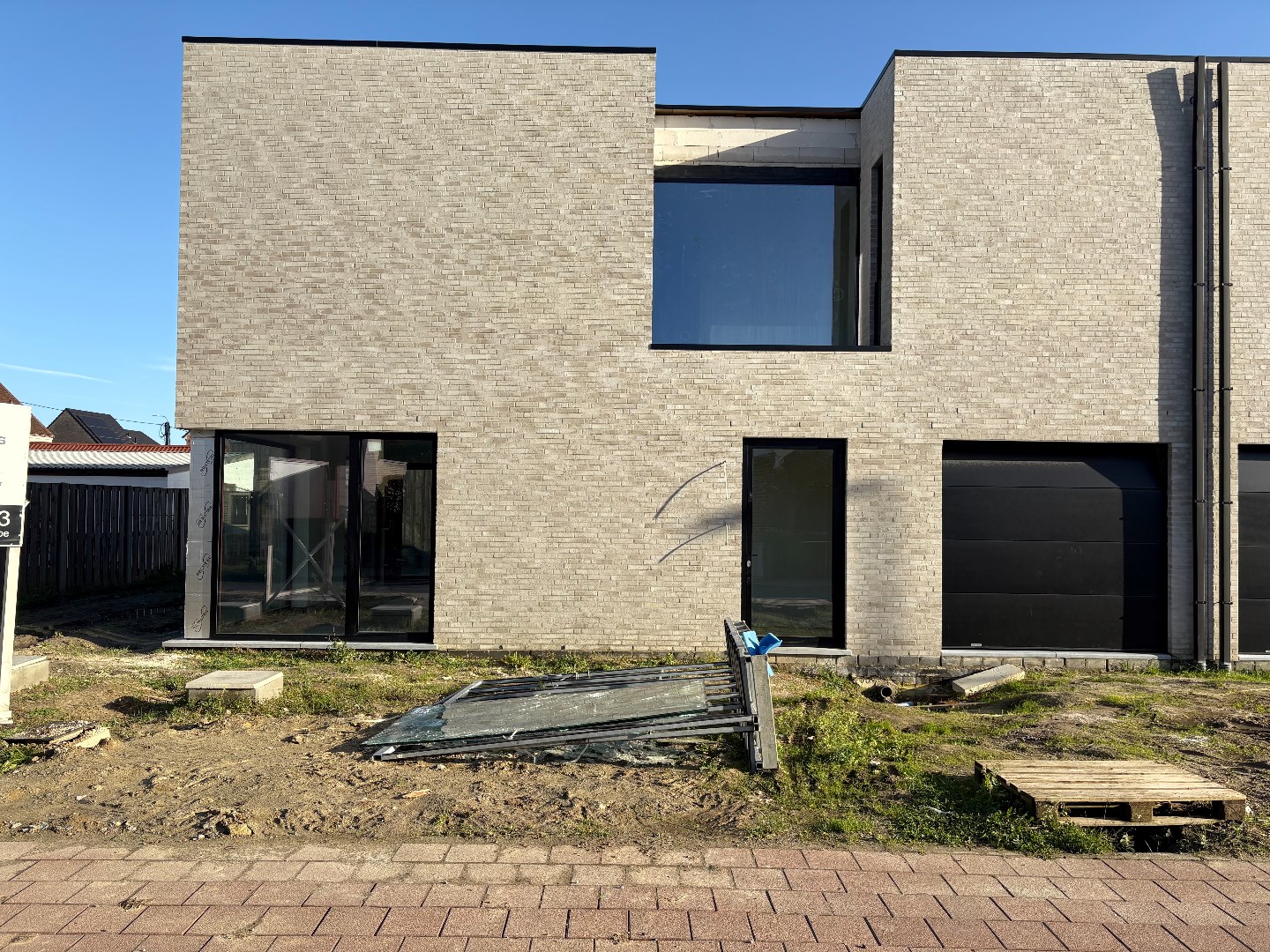 een moderne nieuwbouw 3-gevel woning op en met grond